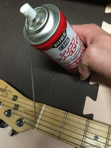 - 弦を持ち上げてナットの溝にグリスを流し込む